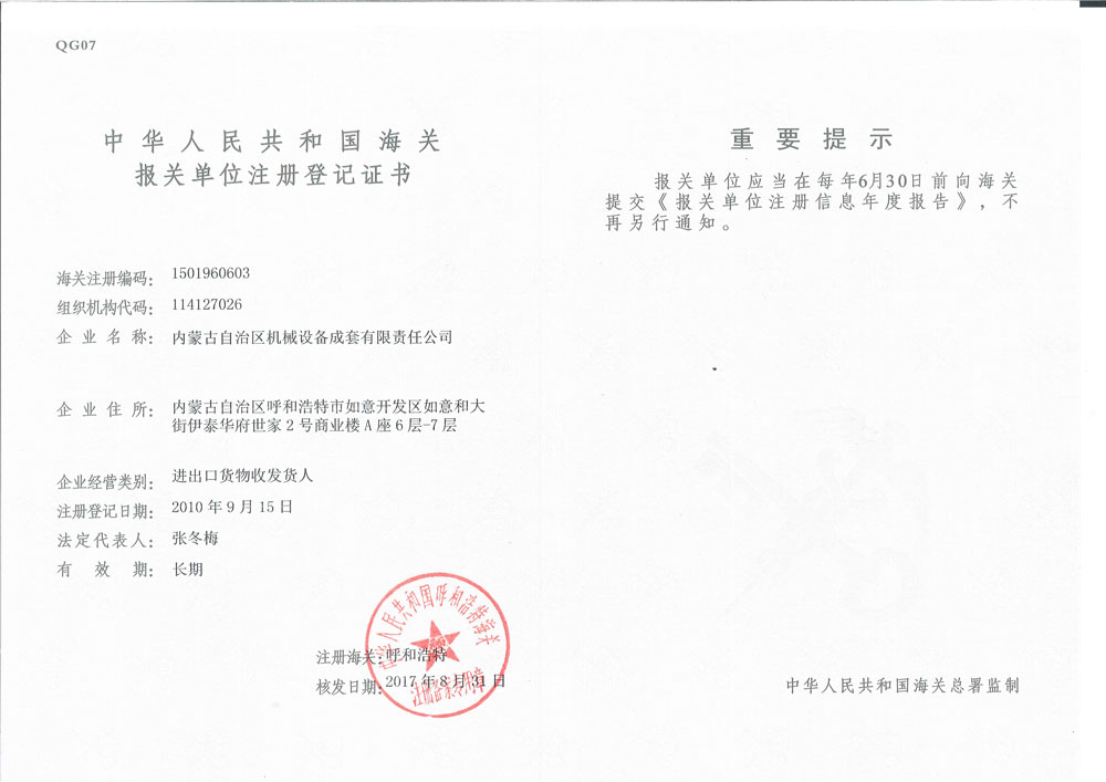 內蒙古自治區機械設備成套有限責任公司營業執(zhí)照